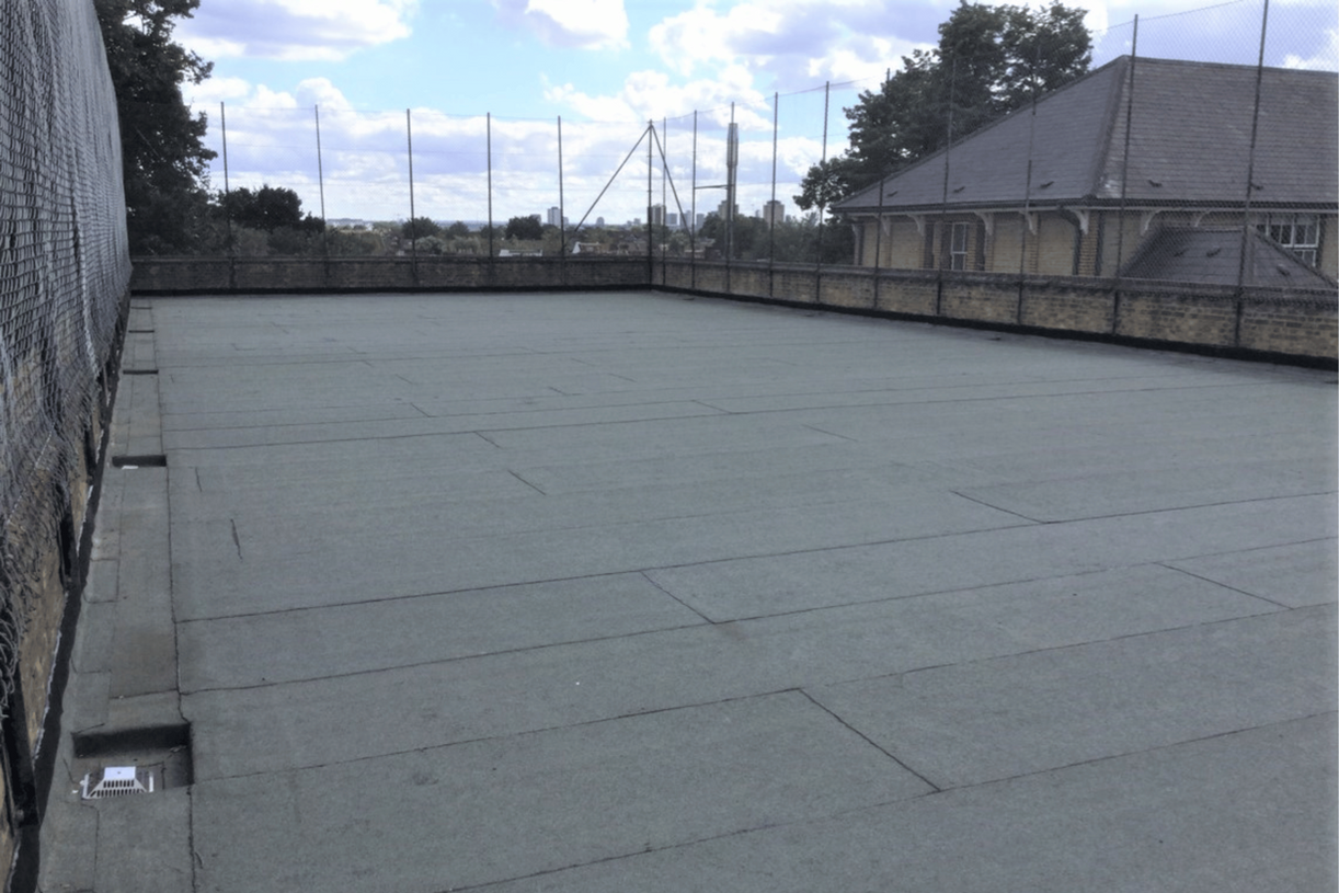 The existing flat roof was no longer fit for purpose, with inadequate waterproofing and insulation, and pupils continued to use it as an elevated playground. The project required a design that protected the historic building fabric while also providing a safe, functional outdoor sports surface.